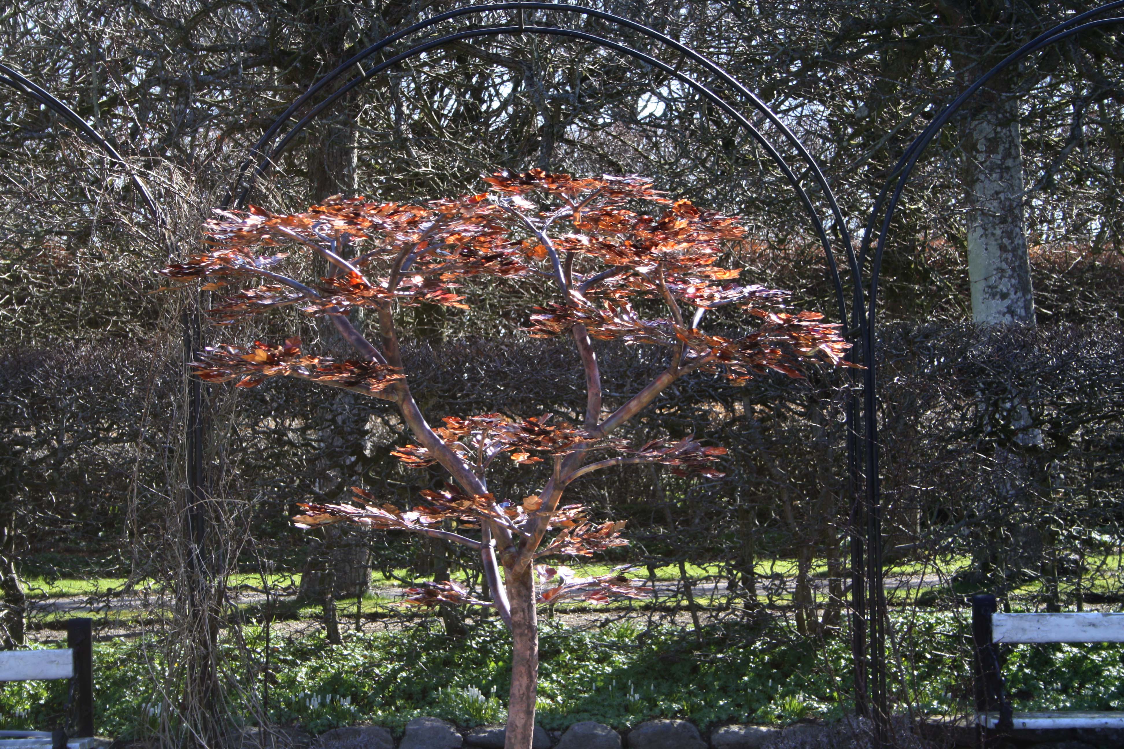 Titania det rindende kobbertræ står klar – det re også fantastisk smukt uden vand og kan sagtens bruges uden vand, men det bliver dog væsentligt mere smuk med vand der løber ud over bladene.
